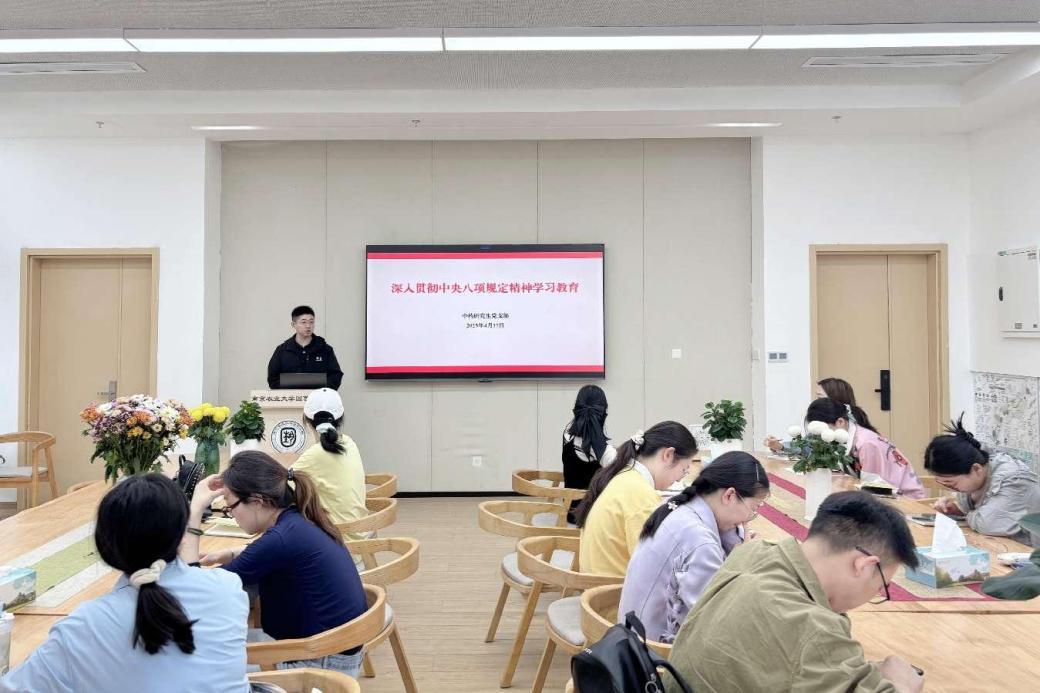 窦靓在会议总结时提出三点要求,一是要提高认识,对待后续学习要继续保持思想自觉、政治自觉、行动自觉,杜绝将学习变成“打卡式”,把严的基调一贯到底;二是要学思悟透理论精髓,确保学习成果内化于心、外化于行;三是要学做结合,深化“作风思想+中药科研”融合,激发学生党员将学习中央八项规定精神的政治热情转化为科研实验的不竭动力。