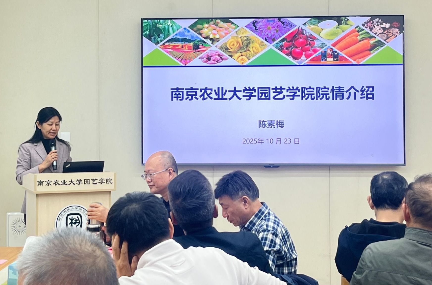 陈素梅从学科布局、团队建设、科研创新、社会服务等方面,详细介绍了学院聚焦国家“菜篮子”工程战略需求,在蔬菜种业振兴、绿色高效生产等关键领域取得的一系列突破性成就,以及学科强劲的发展态势。