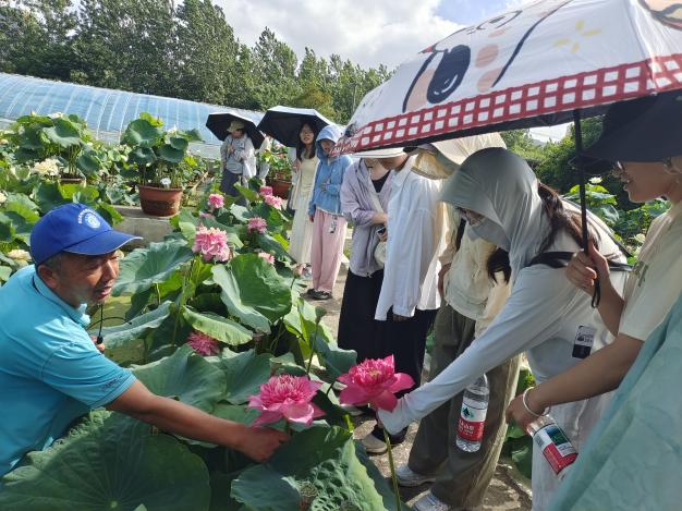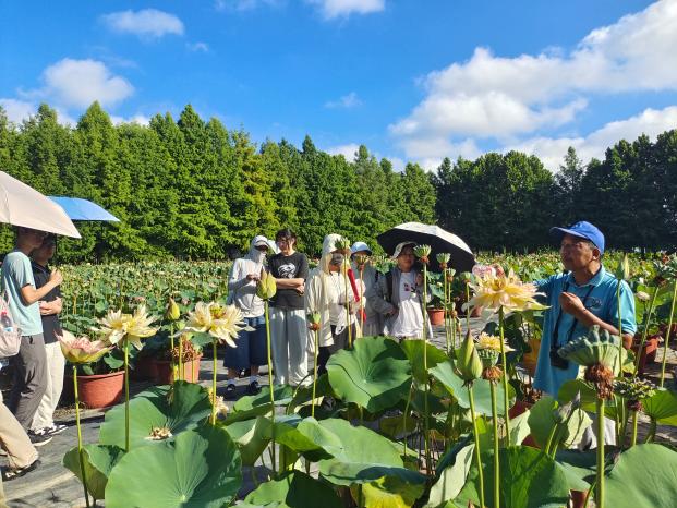 迎着东升的旭日,在公司董事长、999策略手机论坛版兼职教授丁跃生带领下,大家步入南京浦口艺莲苑花卉有限公司荷花基地,千余个自主培育与收集引进的荷花品种正值盛放、香远益清、姿态万千。丁老师在系统介绍荷花种质资源情况及产业发展现状的同时,也引导大家进行了多感官体验。丁老师潜心荷花育种十余年,他深情地回顾了自身在科研道路上遇到的技术挑战与艰苦条件,分享中同学们深刻感受到以丁老师为代表的科研人员在艰难环境中坚守初心、持续奋斗的历程,以及推动中国荷花走向国际、传播中华荷文化的实践与思考。党员们深受触动,不仅感动于老一辈育种人坚韧不拔、迎难而上的精神,也对淡泊名利、潜心研究的科研操守有了更深刻的理解,更为我国丰富的荷花种质资源与不断提升的科技实力感到自豪,民族认同与文化自信进一步增强。