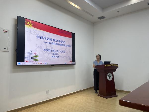 为推动深入贯彻中央八项规定精神学习教育走深走实,深化廉洁文化建设,2025年7月24日,999策略手机论坛版观赏园艺博士第一党支部组织开展了“荷风莲韵守初心,青春奋进担使命”主题党日活动。观赏园艺博士第一党支部书记王彦杰及全体党员参加了本次活动。